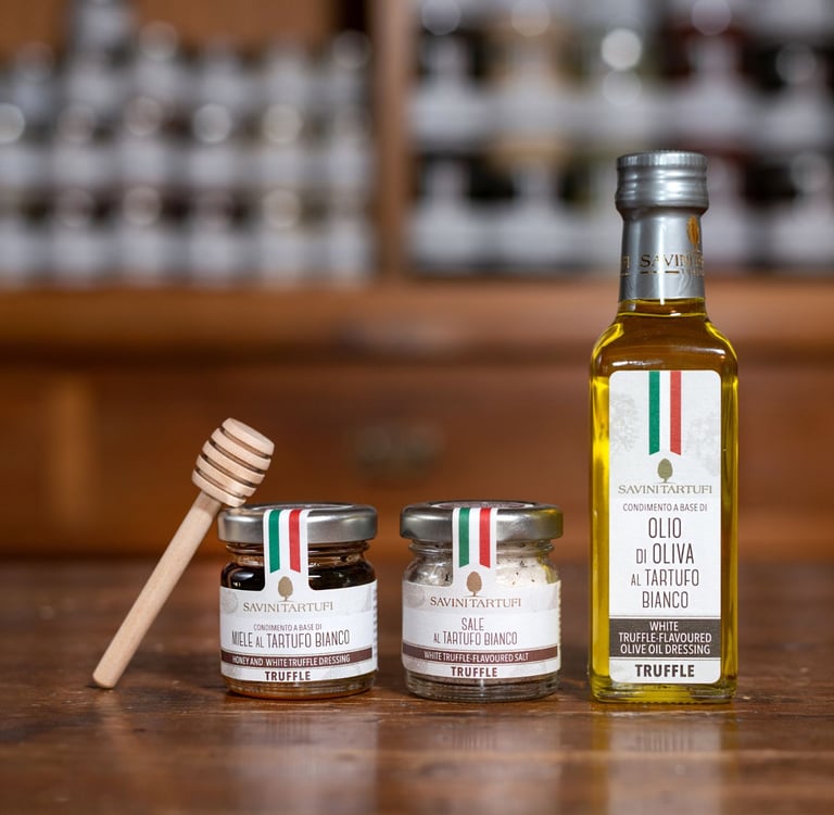 The complete kit with the best products to enjoy it all year round: White Truffle Oil, Salt, and Honey!