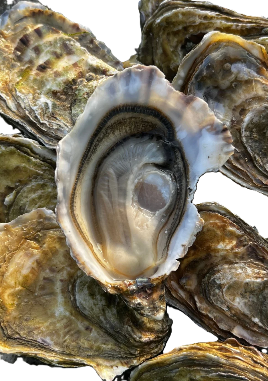 grown for over three years on the French Atlantic Coast, its less fleshy, but prized for its refined flavor and balanced brininess. Finished in clay ponds, it develops a cleaner taste and smoother texture